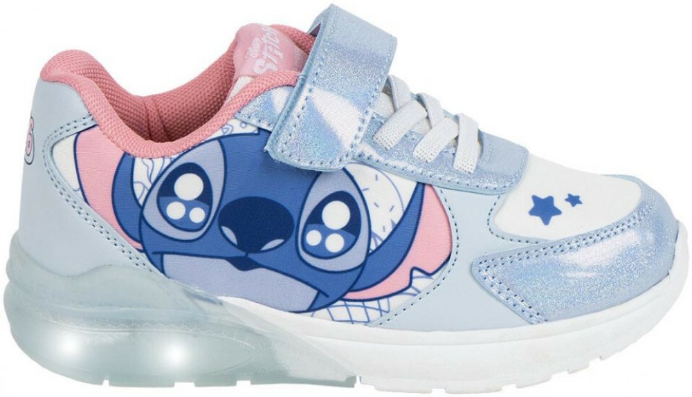 Moderní dětské tenisky Disney Lilo & Stitch přinášejí kombinaci pohodlí, kvality a oblíbeného motivu Stitch. Boty mají světlý bílý základ doplněný modrými a růžovými detaily a výrazným obrázkem na boku, který zaujme na první pohled. Při chůzi se aktivuje LED podrážka, která bliká a dodává každému kroku zábavný efekt.