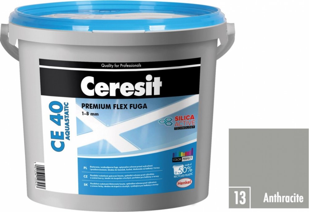 Voděodolná, flexibilní spárovací hmota vhodná obzvláště na spárování obkladů a dlažeb z keramiky, včetně gresové (nenasákavá), skla, mozaiky, přírodního kamene a mramoru na stěnách i podlahách. Určena k použití v interiéru i exteriéru, včetně balkonů, lodžií a teras. Zvlášť se doporučuje na kritické podklady, jako je sádrokarton, dřevotříška a plochy s podlahovým vytápěním. Inovativní polymerová technologie Silica Active zaručuje optimální čas vytvrzení a umývání v případě gresových i keramických dlažeb, vysokou odolnost proti vzniku trhlin a poškrábání a zároveň technologie Color Perfect zabezpečuje trvalou barevnost, dlouholetou vysokou kvalitu a dokonalý vzhled spárovací hmoty. Díky vodoodpudivému efektu Aquastatic zůstávají kapky na povrchu spáry a nevsakují se do její struktury, což zvyšuje odolnost proti plísním a poškození. Tyto vlastnosti dělají spárovací hmotu CE 40 ideálním přípravkem k použití na místech dlouhodobě vystaveným působení vody, jako jsou koupelny, sprchy a kuchyně. Vlastnosti - S technologií Color Perfect (dokonalá stálost a intenzita barev, snadné čištění a péče, odolnost proti výkvětům a změně barvy - Vysoká odolnost proti vzniku trhlin a poškrábání - Optimální čas vytvrzení a umývání v případě gresových dlažeb - Snadné míchání a aplikace spárovací hmoty - Chráněna proti plísním a houbám Technické parametry: Teplota spárování: +5°C až +25°C Doba počátečního zrání: cca 3 min. Doba zpracování: do 1,5 hodiny Pochozí po: 6 hod. Tepelná odolnost: od -30°C až do +70°C Orientační spotřeba: 0,4 kg/m2 na šířku spáry 2 mm a rozměr obkladů 10 x 10 cm
