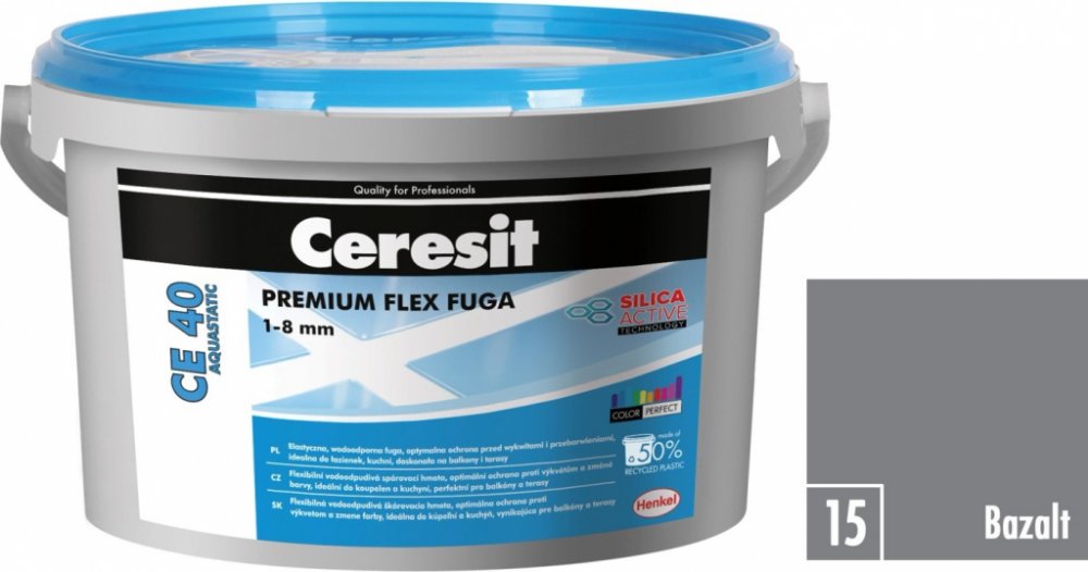Voděodolná, flexibilní spárovací hmota vhodná obzvláště na spárování obkladů a dlažeb z keramiky, včetně gresové (nenasákavá), skla, mozaiky, přírodního kamene a mramoru na stěnách i podlahách. Určena k použití v interiéru i exteriéru, včetně balkonů, lodžií a teras. Zvlášť se doporučuje na kritické podklady, jako je sádrokarton, dřevotříška a plochy s podlahovým vytápěním. Inovativní polymerová technologie Silica Active zaručuje optimální čas vytvrzení a umývání v případě gresových i keramických dlažeb, vysokou odolnost proti vzniku trhlin a poškrábání a zároveň technologie Color Perfect zabezpečuje trvalou barevnost, dlouholetou vysokou kvalitu a dokonalý vzhled spárovací hmoty. Díky vodoodpudivému efektu Aquastatic zůstávají kapky na povrchu spáry a nevsakují se do její struktury, což zvyšuje odolnost proti plísním a poškození. Tyto vlastnosti dělají spárovací hmotu CE 40 ideálním přípravkem k použití na místech dlouhodobě vystaveným působení vody, jako jsou koupelny, sprchy a kuchyně. Vlastnosti - S technologií Color Perfect (dokonalá stálost a intenzita barev, snadné čištění a péče, odolnost proti výkvětům a změně barvy - Vysoká odolnost proti vzniku trhlin a poškrábání - Optimální čas vytvrzení a umývání v případě gresových dlažeb - Snadné míchání a aplikace spárovací hmoty - Chráněna proti plísním a houbám Technické parametry: Teplota spárování: +5°C až +25°C Doba počátečního zrání: cca 3 min. Doba zpracování: do 1,5 hodiny Pochozí po: 6 hod. Tepelná odolnost: od -30°C až do +70°C Orientační spotřeba: 0,4 kg/m2 na šířku spáry 2 mm a rozměr obkladů 10 x 10 cm