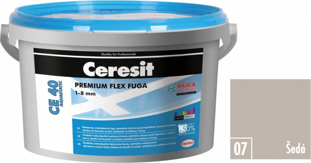 Voděodolná, flexibilní spárovací hmota vhodná obzvláště na spárování obkladů a dlažeb z keramiky, včetně gresové (nenasákavá), skla, mozaiky, přírodního kamene a mramoru na stěnách i podlahách. Určena k použití v interiéru i exteriéru, včetně balkonů, lodžií a teras. Zvlášť se doporučuje na kritické podklady, jako je sádrokarton, dřevotříška a plochy s podlahovým vytápěním. Inovativní polymerová technologie Silica Active zaručuje optimální čas vytvrzení a umývání v případě gresových i keramických dlažeb, vysokou odolnost proti vzniku trhlin a poškrábání a zároveň technologie Color Perfect zabezpečuje trvalou barevnost, dlouholetou vysokou kvalitu a dokonalý vzhled spárovací hmoty. Díky vodoodpudivému efektu Aquastatic zůstávají kapky na povrchu spáry a nevsakují se do její struktury, což zvyšuje odolnost proti plísním a poškození. Tyto vlastnosti dělají spárovací hmotu CE 40 ideálním přípravkem k použití na místech dlouhodobě vystaveným působení vody, jako jsou koupelny, sprchy a kuchyně. Vlastnosti - S technologií Color Perfect (dokonalá stálost a intenzita barev, snadné čištění a péče, odolnost proti výkvětům a změně barvy - Vysoká odolnost proti vzniku trhlin a poškrábání - Optimální čas vytvrzení a umývání v případě gresových dlažeb - Snadné míchání a aplikace spárovací hmoty - Chráněna proti plísním a houbám Technické parametry: Teplota spárování: +5°C až +25°C Doba počátečního zrání: cca 3 min. Doba zpracování: do 1,5 hodiny Pochozí po: 6 hod. Tepelná odolnost: od -30°C až do +70°C Orientační spotřeba: 0,4 kg/m2 na šířku spáry 2 mm a rozměr obkladů 10 x 10 cm