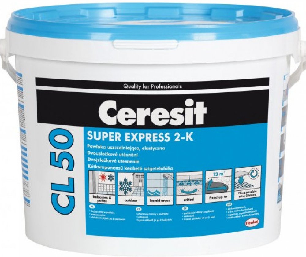 Dvousložková elastická hydroizolace pod obklady a dlažbu je určena k utěsnění podkladu proti vodě a vlhkosti před lepením obkladů a dlažby z keramiky a přírodního kamene v interiéru i exteriéru. Ceresit CL 50 je doporučena pro oblasti trvale či občasně namáhané vlhkostí, jakou jsou bazény, terasy, balkóny, veřejné sprchy, toalety či velkokapacitní kuchyně a prostory s odtokovými prvky v podlaze.