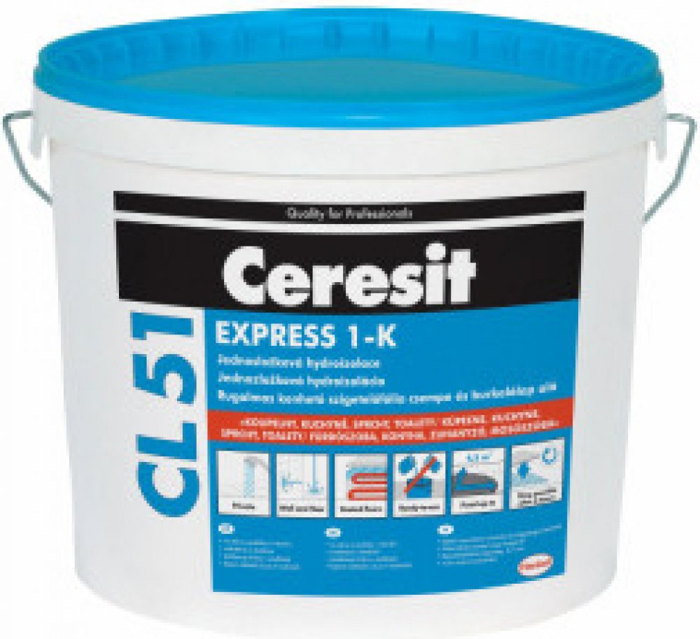 Popis: Ceresit CL 51 je jednosložková hydroizolace určena k povrchovému bezešvému utěsnění podkladu před lepením obkladů a dlažeb keramických, slinutých (nenasákavých) a z kameniny v interiéru na místech zatížených vlhkostí, jako jsou koupelny, kuchyně, toalety, sprchy či prádelny. Jednosložková hydroizolace Ceresit CL 51 splňuje nároky pro izolace lehkého typu. Může být použita na cementové potěry, cementové a vápenocementové omítky, stejně jako pórobeton, anhydritové a sádrové podklady, podlahové vyrovnávací hmoty, sádrokartonové, sádrovláknité a cementovláknité desky a OSB desky. Materiál je přímo připravený ke zpracování. Technická data: Základní použití: Na všechny savé i nesavé podklady na stěny i podlahy v interiéru. Oblast použití: Interiér - pro koupelny, kuchyně, toalety, sprchy či prádelny. Voděodolnost: Voděodolná. Mrazuvzdornost: Mrazuvzdorná. Aplikovat lze: Na cementové potěry, cementové a vápenocementové omítky, stejně jako pórobeton, anhydritové a sádrové podklady, podlahové vyrovnávací hmoty, sádrokartonové, sádrovláknité a cementovláknité desky a OSB desky. Poměr míchání: Jedná se o pastovitou hmotu, která je připravena k okamžitému použití. Teplota zpracování: Od +5 °C do +25 °C. Doba schnutí první vrstvy: 1,5 hod. Doba schnutí druhé vrstvy: 2 hod. Možnost lepení dlaždic po: 4 hod (od nanesení druhé vrstvy). Vodotěsná izolace pro použití v obytných a veřejných budovách. Jednoduchá aplikace válečkem, štětcem nebo hladítkem. Schopnost překlenutí trhlin v podkladu. Vhodná pro podlahové vytápění. Orientační spotřeba (dvě vrstvy) : Spotřeba: Cca 1,1 kg/m2. Technické parametry: Barva Šedá Rozměr skutečný 5 kg