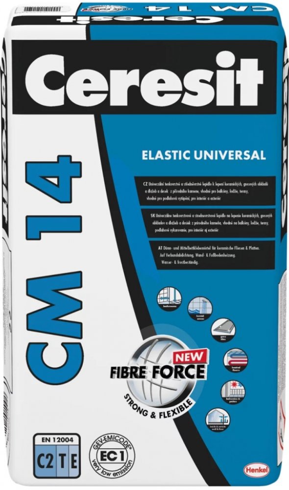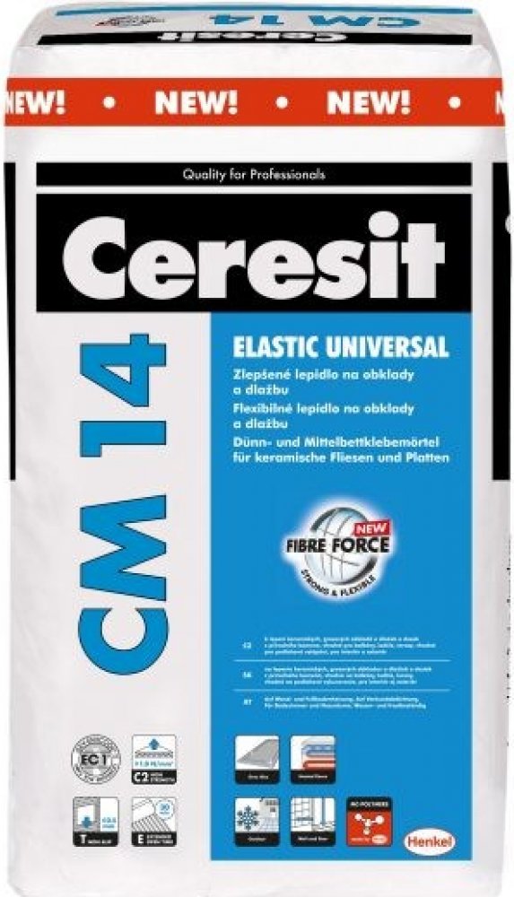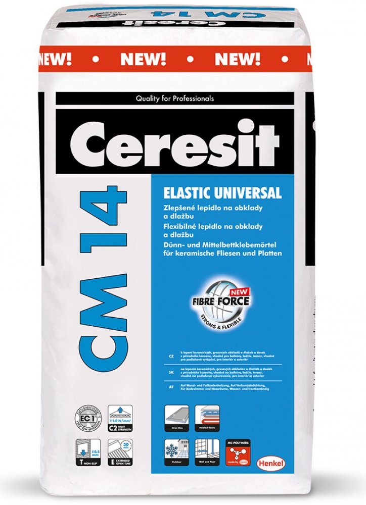 Zlepšené lepidlo Ceresit CM 14 Universal je určené k lepení nenasákavé (gresové) a keramické dlažby, cementových desek a obkladů z umělého i přírodního kamene nenáchylného k probarvení v interiéru i exteriéru a k lepení na kritických podkladech. Lepidlo CM 14 Universal může být použito pro oblasti zatížené vlhkostí a pro podlahové vytápění. Je doporučeno pro podlahy se zvýšeným funkčním zatížením jako v nákupních centrech či na schodištích. Vlastnosti lepidla umožňují použití na sádrovláknité desky a sádrokarton, anhydritové potěry, sádrové a betonové podklady a těsnicí hmoty Ceresit CL 50 a CL 51. Vysoká přídržnost lepidla umožňuje použití na kritických podkladech v interiéru.