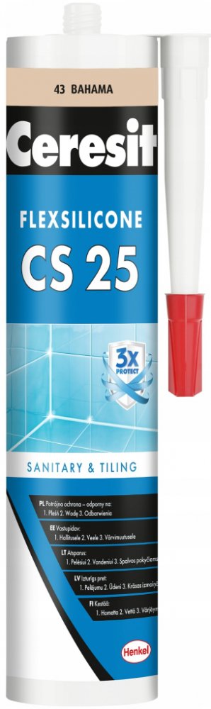 Pro vyplnění dilatačních a spojovacích spár mezi keramickými obklady a dlažbami v rozích nebo ve styku stěn, podlah a k usazování zařizovacích předmětů v sanitární oblasti. Je určen k vyplňování spár tam, kde běžné spárovací hmoty vykazují trhliny a praskliny. Díky trvalé elasticitě a odolnosti proti vodě je vhodný do oblastí trvale zatížených vlhkostí, jako např.: kuchyně, sprchy, koupelny, toalety, balkóny, terasy apod. Nová receptura sanitárního silikonu Ceresit CS 25 MicroProtect, v porovnání s dosud vyráběnou, obsahuje trojnásobné množství protiplísňových přísad a zaručuje v místech, kde se na povrchu spár nemůže držet voda, dlouhodobou ochranu proti vzniku plísní a jejich působení. Spáry tak zůstávají čisté a zdraví neškodné. Materiál má vynikající přídržnost k suchým i nesavým podkladům jako: sklo, keramika, porcelán, pórovina, email apod. Není vhodný pro použití v nádržích na pitnou vodu a pro lepení akvárií, zrcadel a kovů podléhajících korozi.