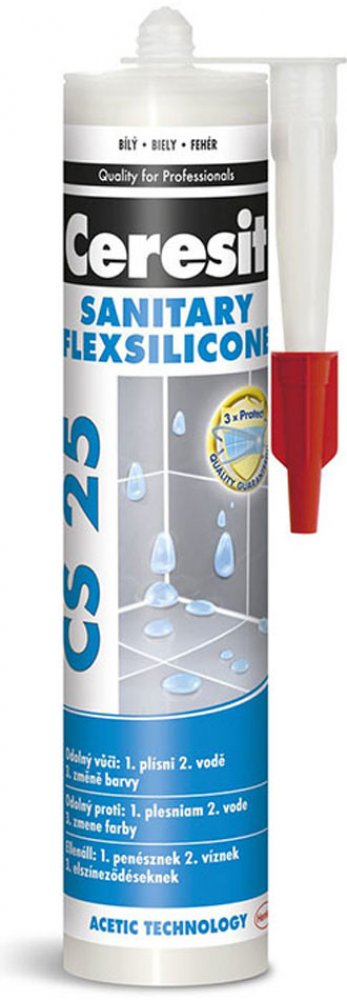 Sanitární těsnicí tmel na acetoxy bázi. Zaručuje zvýšenou odolnost vůči plísním, je trvale elastický a odolný vůči vysokým teplotám.Slouží k vyplnění přechodových a spojovacích spár mezi obklady a dlažbou v rozích nebo ve styku stěn, podlah a k usazování zařizovacích předmětů v sanitární oblasti. Pro interiér i exteriér.