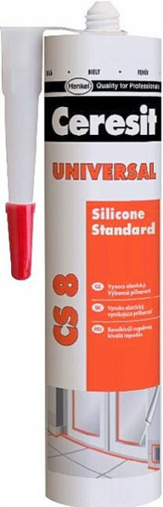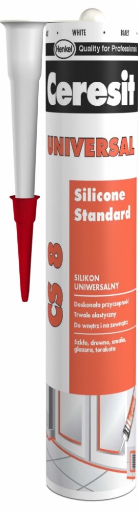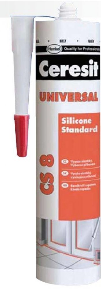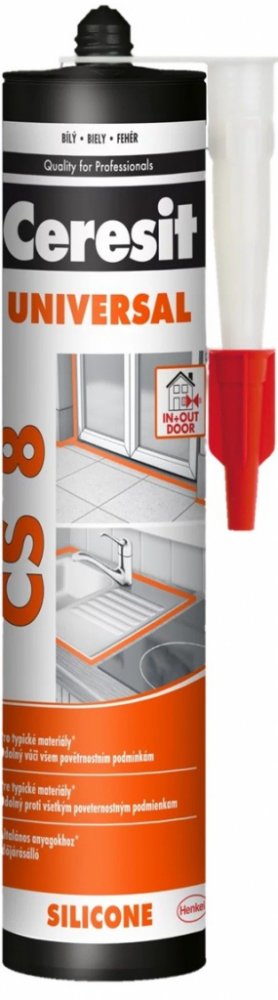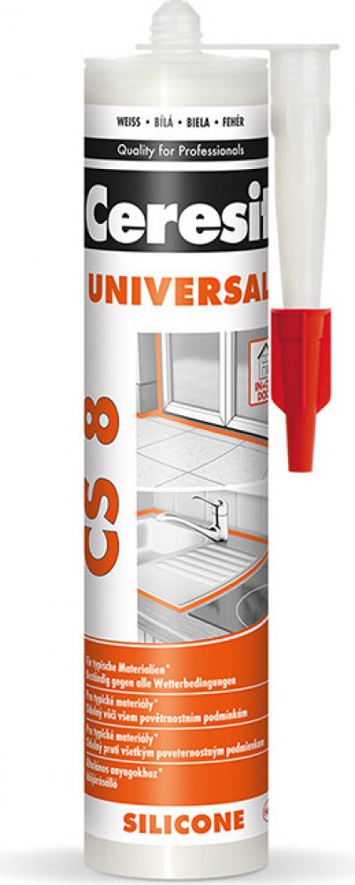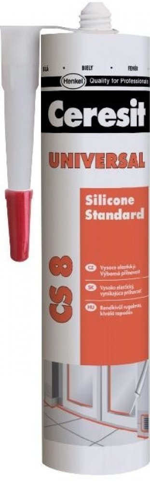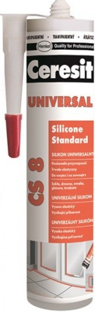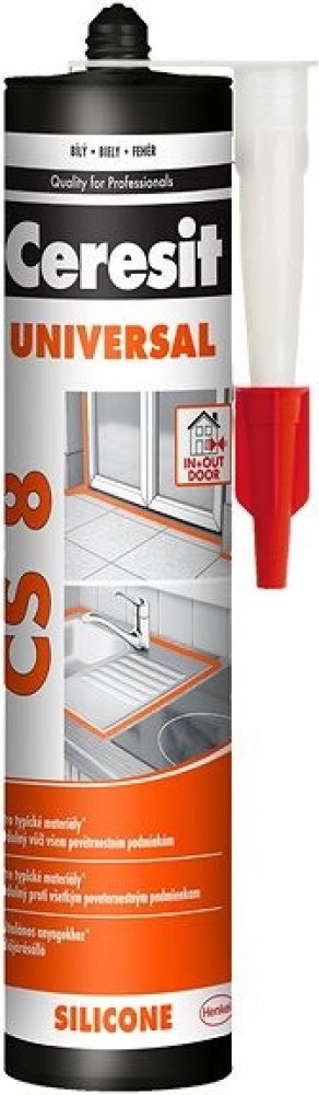 Ceresit CS 8 je jednosložkový acetoxy silikonový tmel k univerzálnímu použití v interiéru i exteriéru. Tmel vytvrzuje vzdušnou vlhkostí za pokojové teploty a vytváří flexibilní a odolnou spáru. CS 8 má dobrou přídržnost ke sklu, keramickým obkladům, glazovaným a lakovaným povrchům, smaltu, eloxovanému hliníku apod. a to bez nutnosti penetrace. Lze ho použít na vytmelování skleněných výplní, osazování sanitární techniky, jako těsnění pro čluny, lodě, automobily, přívěsy apod. Vytvrzený tmel je odolný vůči běžným čisticím prostředkům a mnoha chemikáliím a má výbornou dlouhodobou ochranu proti povětrnostním vlivům (UV záření, déšť, ozón, sůl apod.). Nepoužívejte CS 8 pro lepení zrcadel a akvárií a k tmelení spár obkladů a dlažby z přírodního kamene (např. mramor, granit). V tomto případě zvolte speciální silikon na přírodní kámen. Nepoužívejte CS 8 na polyethylen a PTFE (Teflon®).