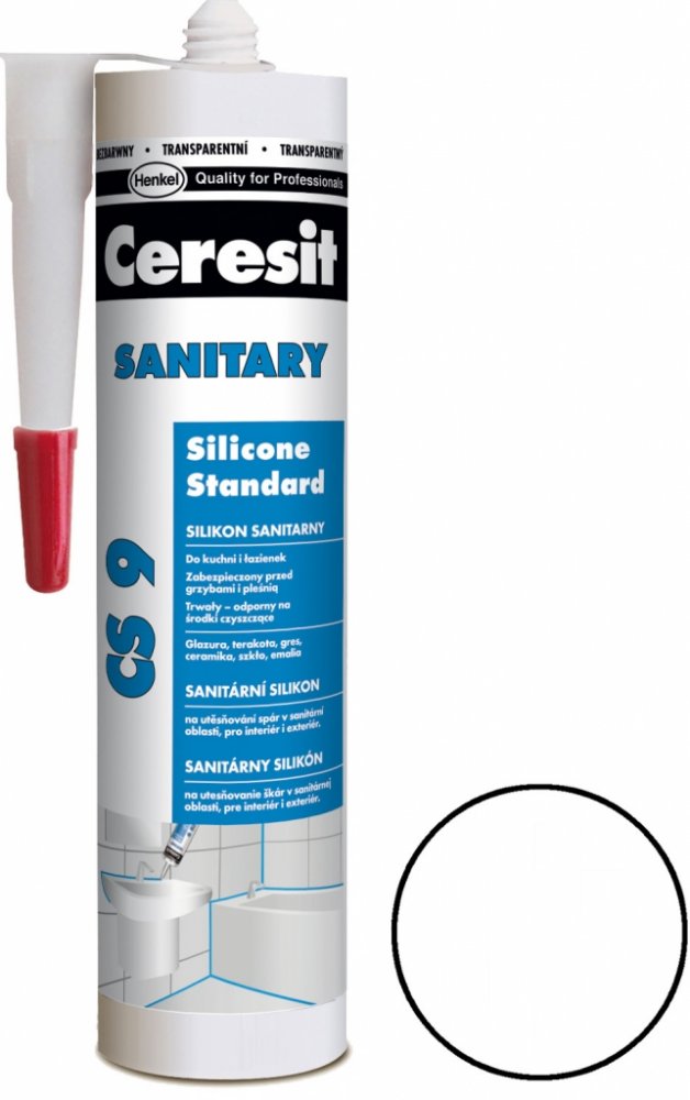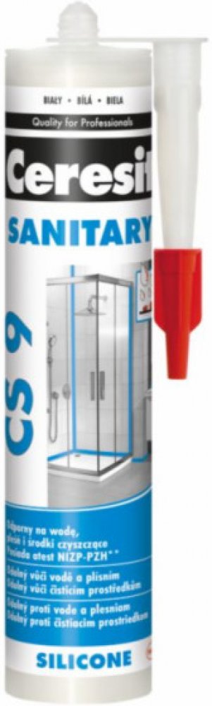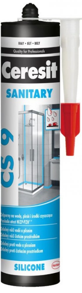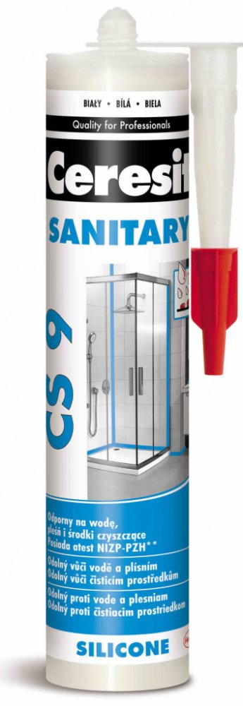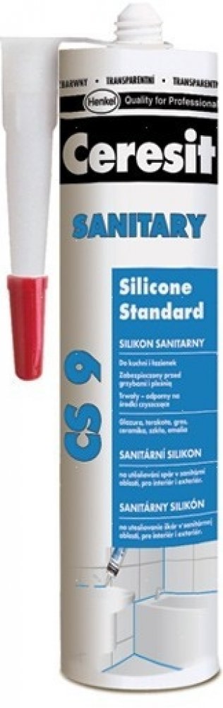 Ceresit CS 9 je jednosložkový acetoxy silikonový tmel pro univerzální použití v interiéru i exteriéru. Tmel vytvrzuje vzdušnou vlhkostí za pokojové teploty a vytváří flexibilní a odolnou spáru s nízkým modulem pružnosti. Ceresit CS 9 je zejména vhodný na místa se zvýšenou vlhkostí, jako jsou koupelny, kuchyně apod. Ceresit CS 9 má dobrou přídržnost ke sklu, keramickým obkladům, glazovaným povrchům, eloxovanému hliníku a to bez nutnosti penetrace. Vytvrzený tmel je odolný vůči běžným čistícím prostředkům a mnoha chemikáliím a má výbornou dlouhodobou ochranu vůči přírodním vlivům (UV záření, déšť, ozón, sůl apod.) Nepoužívejte CS 9 na tmelení spár obkladů a dlažby z přírodního kamene (např. mramor, granit). V tomto případě zvolte speciální silikon na přírodní kámen.