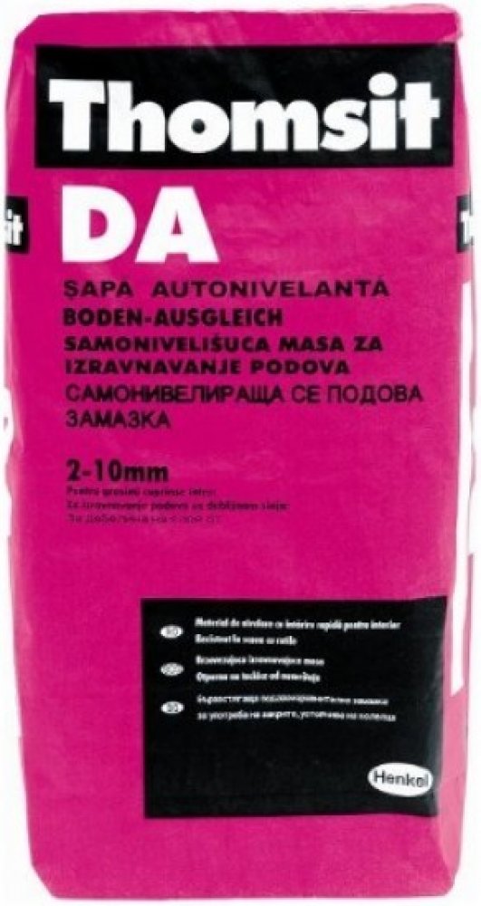 Samonivelační vyrovnávací hmota na podlahy k vyrovnávání cementových potěrů a betonových podlah bez vysokých nároků na zatížení. Pro tloušťku vrstvy 1-10 mm v jedné pracovní operaci v suchém interiéru. Pro větší tloušťky použijte jinou vhodnou samonivelační hmotu Thomsit. Nehodí se ke zhotovování potěrů a konečných užitkových podlah.