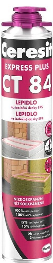 Ceresit CT 84 je jednosložkové PUR lepidlo určené pro lepení izolačních polystyrenových desek v rámci zateplovacích systémů budov.