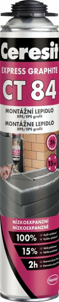 Polyuretanové lepidlo Ceresit CT 84 Express je určeno k lepení polystyrenových desek v exteriéru v kontaktních systémech zateplení budov Ceresit Ceretherm. CT 84 Express je určeno k použití při provádění zateplovacích prací u novostaveb nebo při rekonstrukcích stávajících objektů.