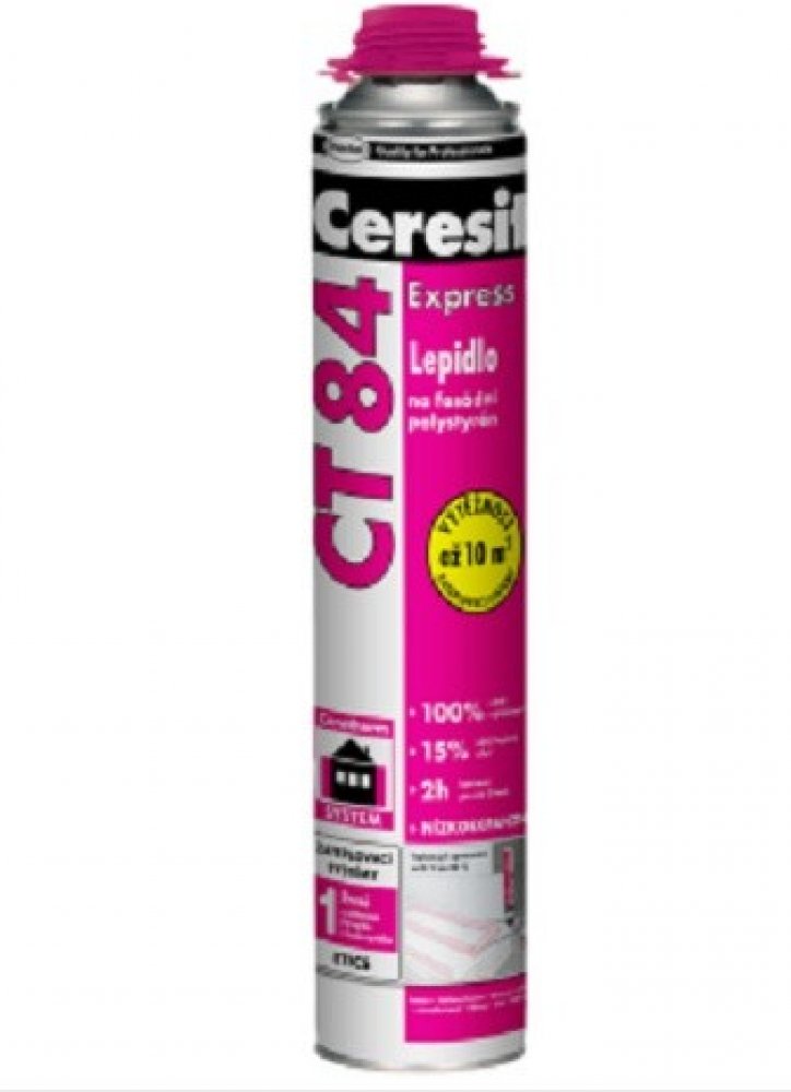 Polyuretanové lepidlo Ceresit CT 84 Express je určeno k lepení polystyrénových desek v exteriéru v kontaktních systémech zateplení budov Ceresit Ceretherm. CT 84 Express je určeno k použití při provádění zateplovacích prací u nov...