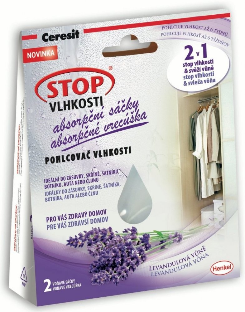 Čistí zatuchlý vzduch v místnosti tím, že stabilizuje hladinu vzdušné vlhkosti.Udržuje vaše prádlo čisté a suché. Působí preventivně proti vlhkosti a zatuchlému vzduchu. Zabraňuje vzniku plísní a bakterií. Nepotřebuje přístroj. Aktivní granulát uvnitř sáčku absorbuje vlhkost, která se následně mění v gel.bezpečnostní list zde