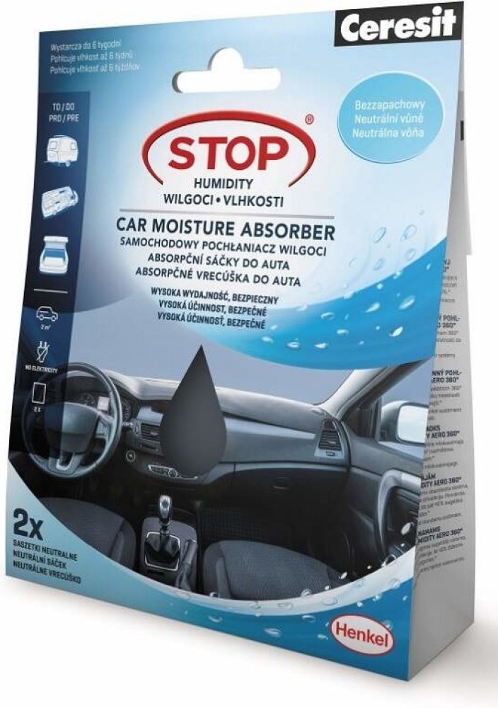 Ceresit Stop vlhkosti absorpční sáčky 2× 50 g (2695721) Absorpční sáček Ceresit intenzivně pohlcuje nadměrnou vlhkost, která je pomocí granulátu proměňována na gel. Speciální tkanina na povrchu sáčku propouští vlhkost jen dovnitř a zabraňuje unikání zpět ze sáčku. Polopropustná membrána zajišťuje cirkulaci vzduchu, ale zároveň zabraňuje úniku nahromaděné vlhkosti zpět ze sáčku. Sáčky jsou vhodné pro velmi malé uzavřené prostory s rozlohou do 1-2 m², ideální do auta, karavanu či stanu. Balení obsahuje celkem 2 ks absorpčních sáčků. Ceresit Stop vlhkosti absorpční sáčky 2× 50 g (2695721) od výrobce Ceresit v kategorii Zahrada, dům a hobby | Garáž, auto, moto, cyklo | Autopříslušenství | Ostatní autopříslušenství za skvělé ceny v Electroword.cz