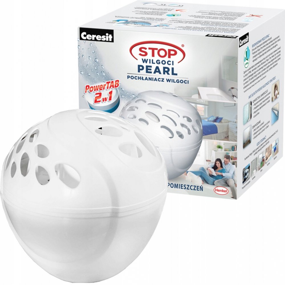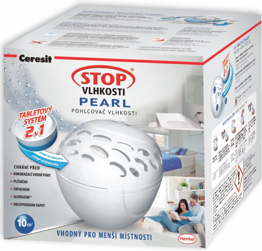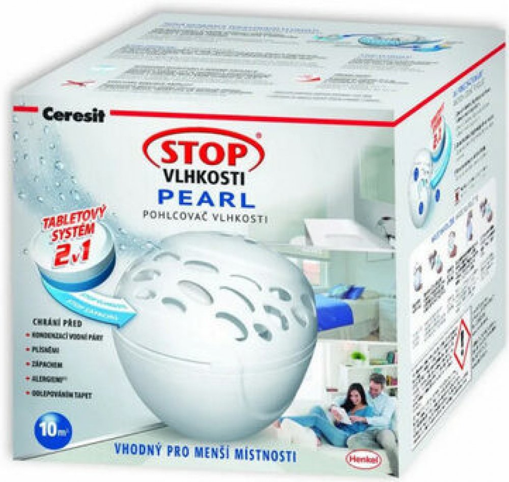Přístroj Ceresit STOP VLHKOSTI PEARL pohlcovač vlhkosti je vhodný pro malé prostory. Díky široké nabídce náhradních voňavých tablet nejen že redukuje nadměrnou vlhkost, ale zároveň příjemně provoní váš domov. Pro váš zdravý domov! Přístroj nepotřebuje ke své činnosti žádnou energii! Okamžitě po vložení tablety začne přístroj vstřebávat nadbytečnou vlhkost ze vzduchu. Do několika hodin od zahájení provozu se v zásobníku objeví první kapky vody. Tableta používáním postupně zmenšuje svůj objem dokud se zcela nerozpustí. Tekutinu vylijte ze zásobníku po úplném rozpuštění tablety a vložte novou tabletu.