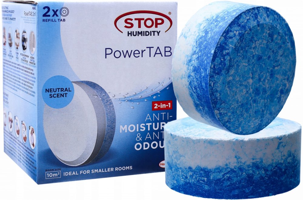 Jedna tableta vydrží přibližně 2 měsíce* v místnosti o velikosti 10m2 nebo 25m3 při vlhkosti dosahující 65 %. To znamená, že námi nabízené tablety jsou mnohem účinnější než tradiční sůl používaná k absorpci vlhkosti.