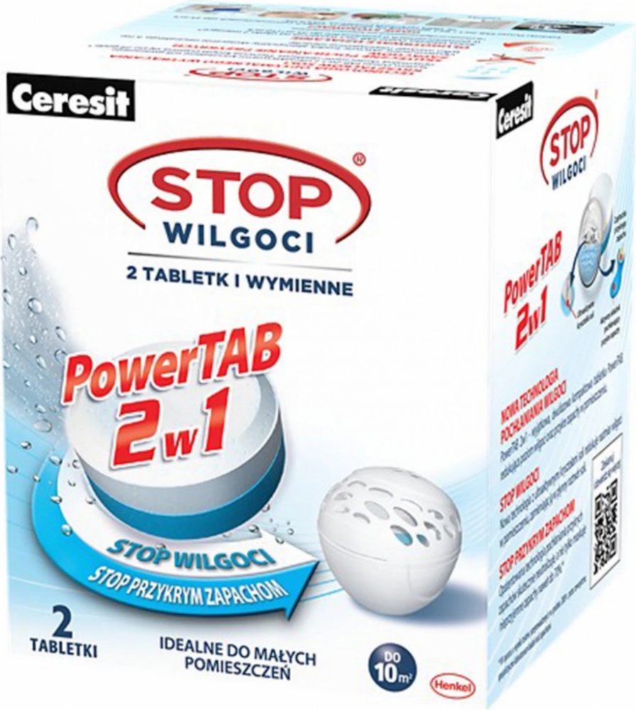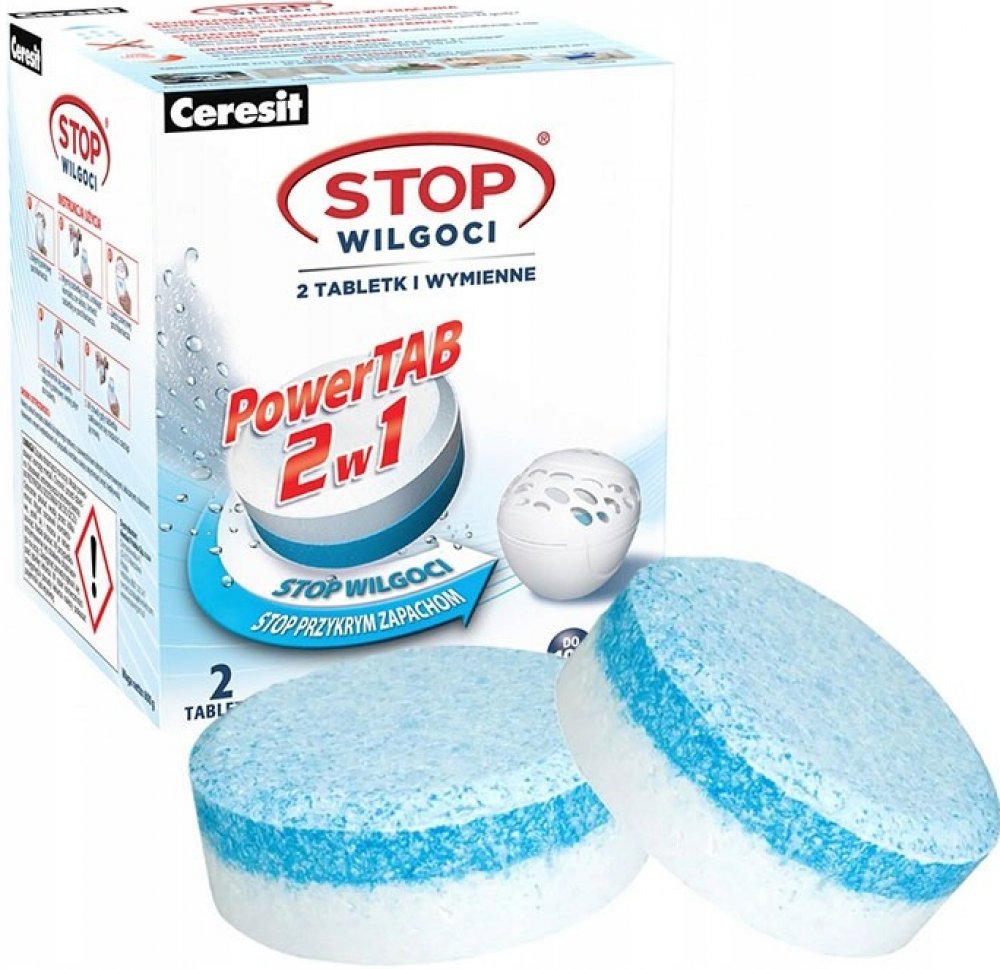 Tableta ceresit postupně zmenšuje objem, jak vstřebává vlhkost, až nakonec rozpustí až do konce. Tablet je uzpůsoben pro pohlcovač zachycený na obrázku