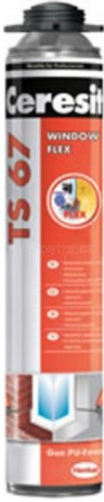 Ceresit TS 67 WINDOW / FLEX je ideální pro montáž okenních a dveřních rámů, lepení parapetů a prahů, vytváření zvukotěsných clon, utěsňování otvorů ve střešních konstrukcích a izolačních materiálech. Pěnu lze nanášet na omítky a nátěry bez použití penetrace.
