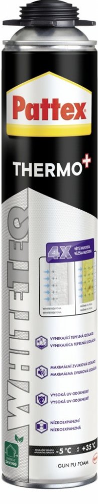 Pattex WhiteTeq je nová generace bílé polyuretanové pěny vyrobená na základě čistých a koncentrovaných složek díky pokročilé technologii WhiteTeq. Tato technologie zajišťuje až 10× vyšší odolnost vůči UV záření, vynikající jemnou strukturu, a především výrazně lepší izolační vlastnosti.