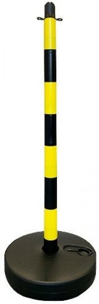 Černo-žlutý plastový vymezovací sloupek s podstavou na výplň. Aby byla zachována odolnost a stabilita systému oplocení, měly by být jejich základy doplněny vodou nebo pískem. Snadno se přenášejí a přepravují. V nabídce jsou bílo-červené nebo žluto-černé. Plastový řetízek se na čepici připevňuje odříznutím posledního článku (zářez umožňuje provlečení segmentu řetízku uzavřeným okem čepice) nebo dodatečně pomocí spojky "S". Sloupy mají stabilní kulaté pryžové základny. Řetěz lze zkrátit na libovolnou délku. Toto balení obsahuje pouze jeden sloupek.