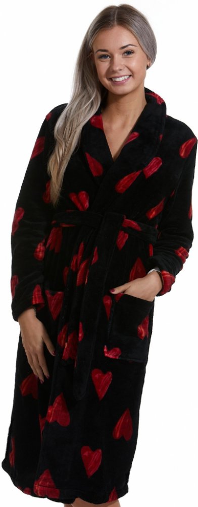 Černý dámský župan huňatý s límcem se srdíčky 1Z1221 černá