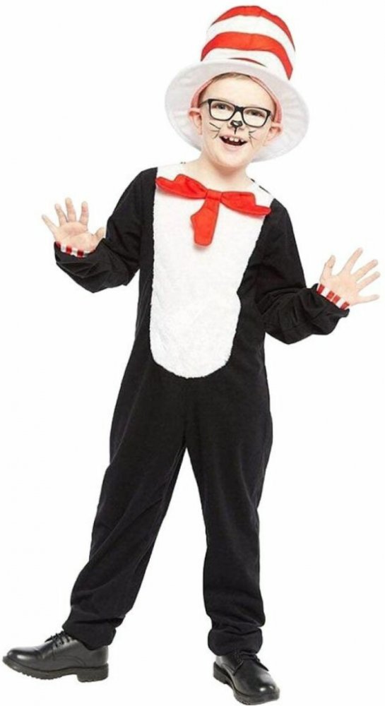 Stylové zakončení rukávů s červenobílými pruhy a výrazný pruhovaný klobouk dodávají kostýmu pohádkový charakter a zajišťují jednotný vzhled celého převleku. Měkké a lehké materiály přispívají k pohodlí při celodenním nošení, ať už na karnevalu, tematické oslavě nebo při dětských hrách doma. Kostým je ideální volbou pro kluky, kteří chtějí být nepřehlédnutelným černým kocourem s veselým nádechem.