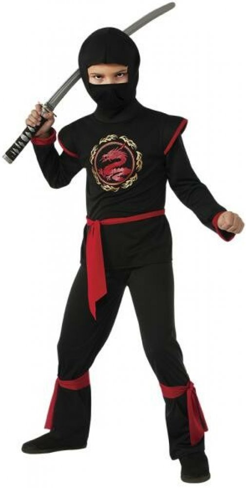 Dětský Kostým "Ninja červený drak" velikost 92/104 cm, barva černá a červená. Kostým na karnevalový ples, narozeninovou oslavu nebo jinou zábavu, umožňující vžít se do postavy japonského bojovníka Ninja. Kostým se skládá z následujících prvků: kapuce, šátek na hlavu, vesta, kombinéza, opasek.