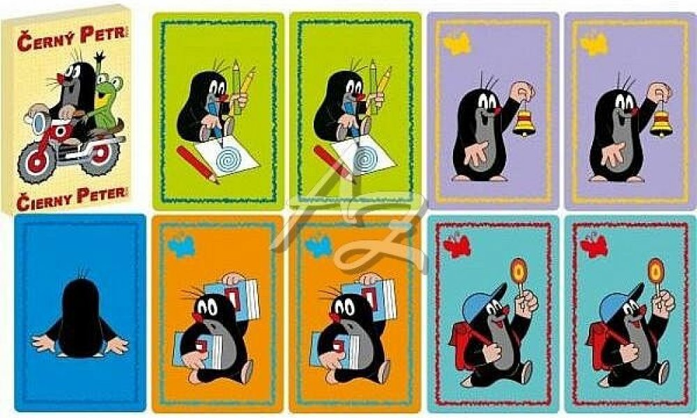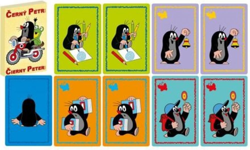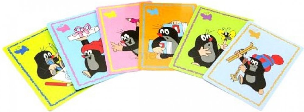 Hrací karty pro dětskou hru Černý Petr s obrázky z oblíbeného kresleného seriálu Krteček.