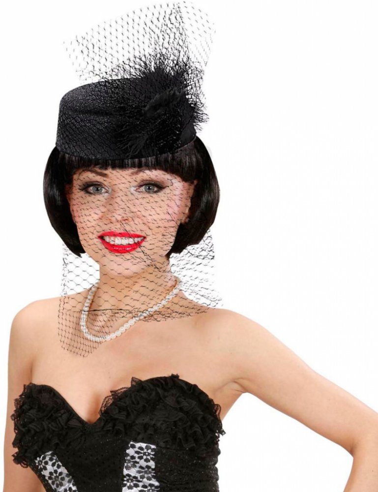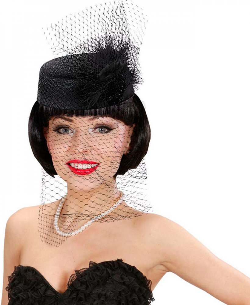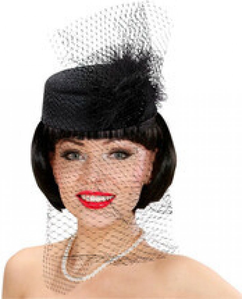 *Dámský černý klobouček s peřím a závojem uplatníte třeba na retro párty v duchu první republiky Dámský černý klobouček s peřím a závojem uplatníte třeba na retro párty v duchu první republiky