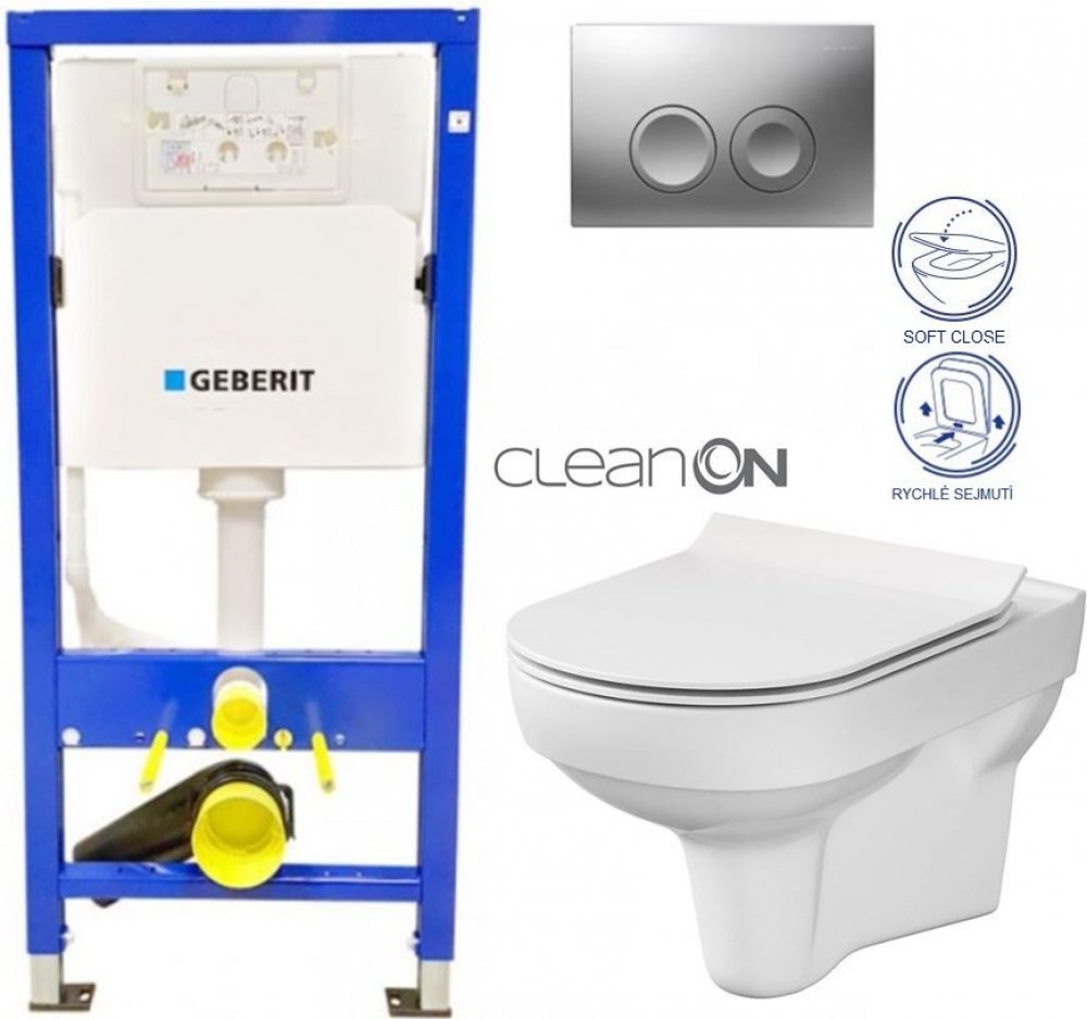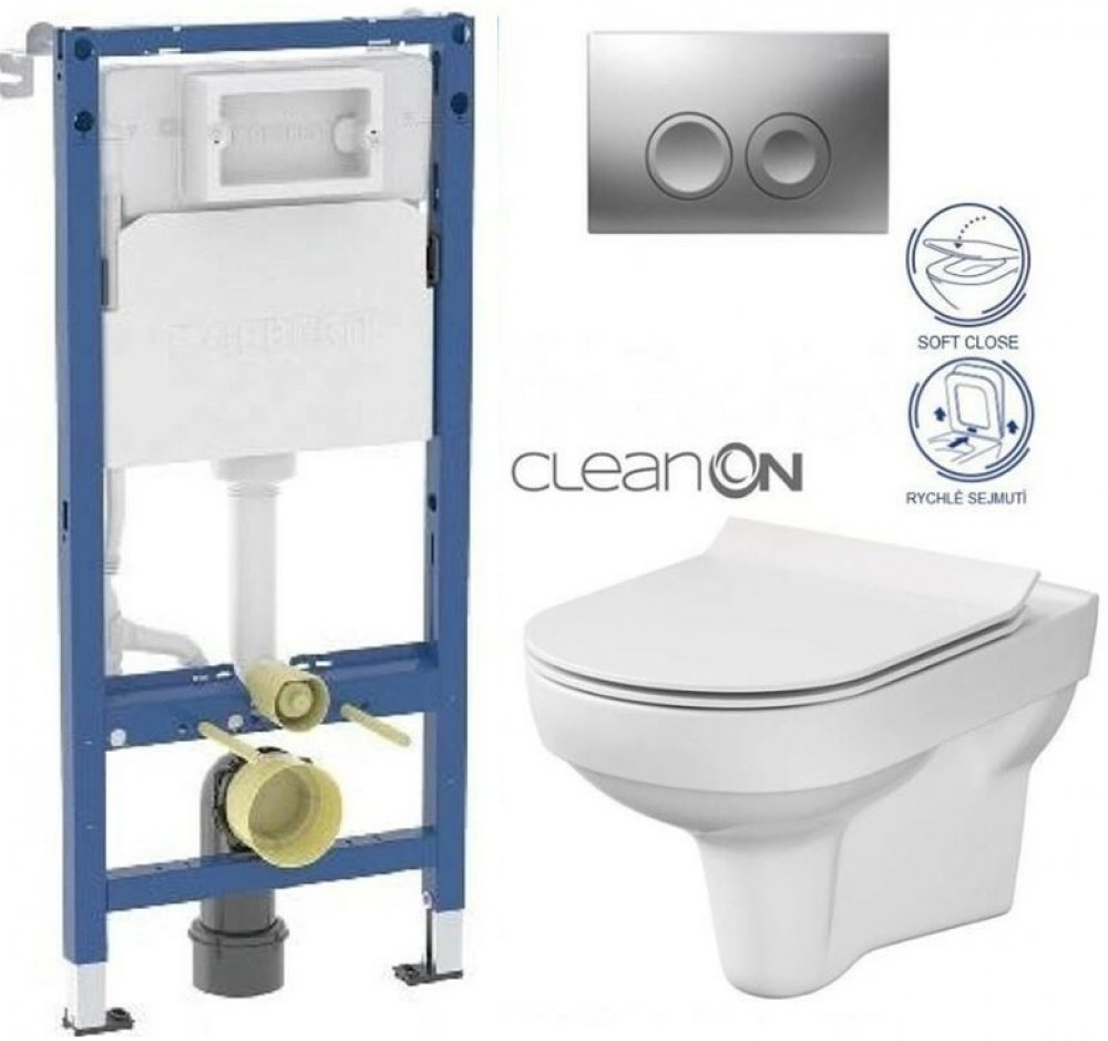 SET 794 ZÁVĚSNÁ WC MÍSA CITY NEW CLEANON + WC SEDÁTKO SLIM DUR SC ONE BUTTON BOX (K701-143)