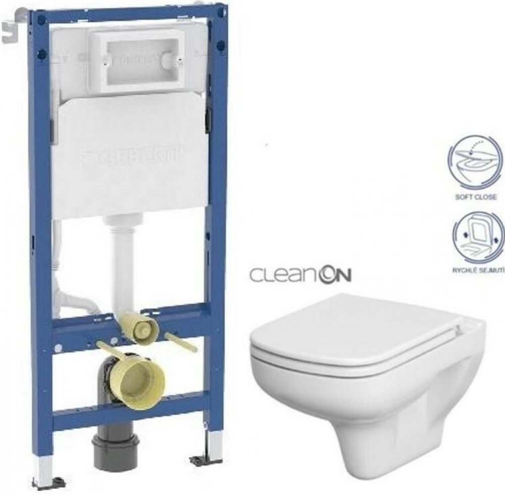 WC závěsná mísa COLOUR NEW CleanOn elegantního vzhledu s horizontálním odpadem, funkcí splachování 2/4, 2,5/5, 3/5l.