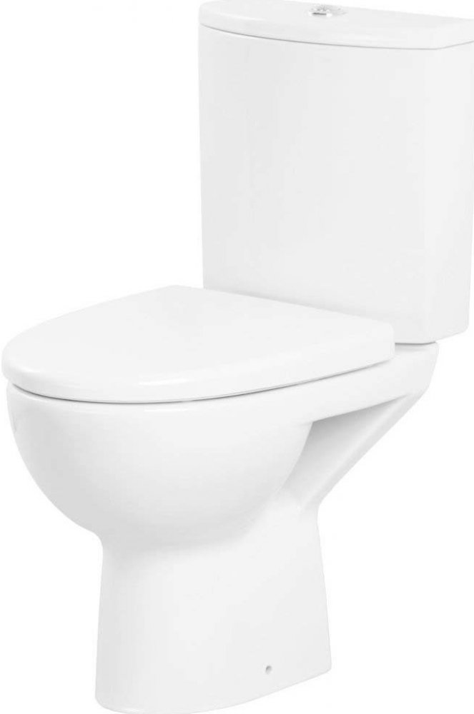 Stojící mísa PARVA Cersanit bílé barvy. Mísa se svislým odpadem, přívod vody z boku nádrže s funkcí 3/6 l. Součástí sedátko antibakteriální, duroplastové.