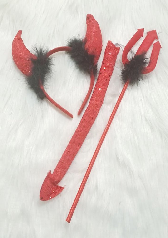 Proměňte se v okouzlující čertici s tímto jedinečným setem, který je celý vyzdoben červenými flitry. Tento stylový kostýmový doplněk zahrnuje čelenku s lesklými glitrovými růžky, trojzubec a ocas, což zaručí, že budete vypadat naprosto neodolatelně. Skvělé pro karnevaly, tematické párty nebo na Mikuláše. Všechny čertice si s těmito doplňky přijdou na své!