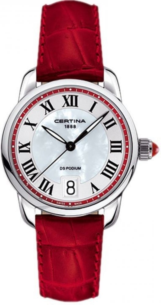 Certina kombinované kůže ocel 32.5 x 32.5 x 8.9 mm 100 m 52 g safírové elegantní dámské bateriové - quartz DS Podium kulaté červená bílá 1.6 cm