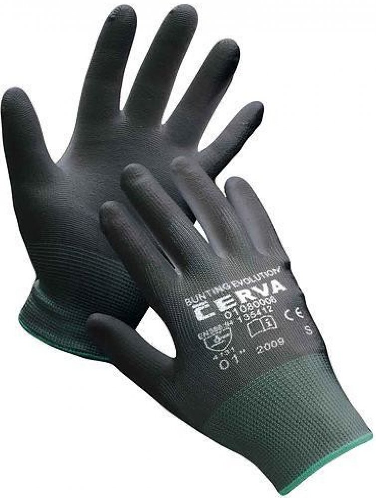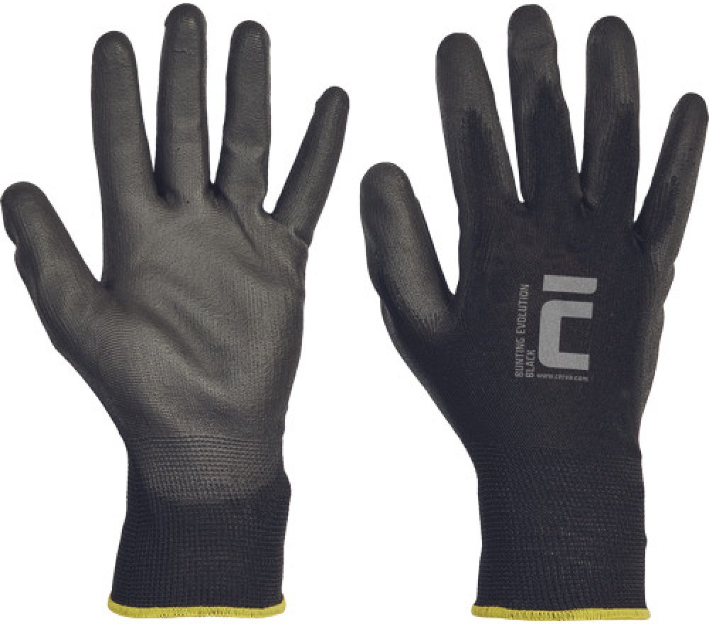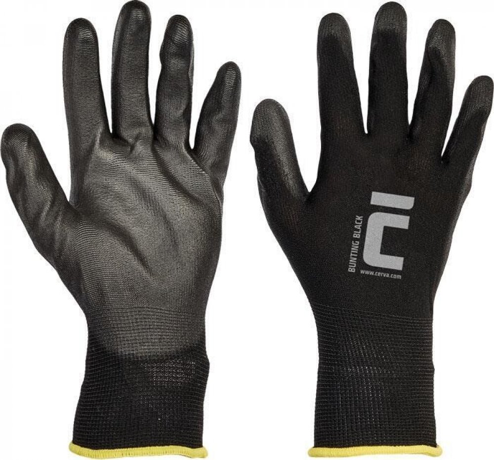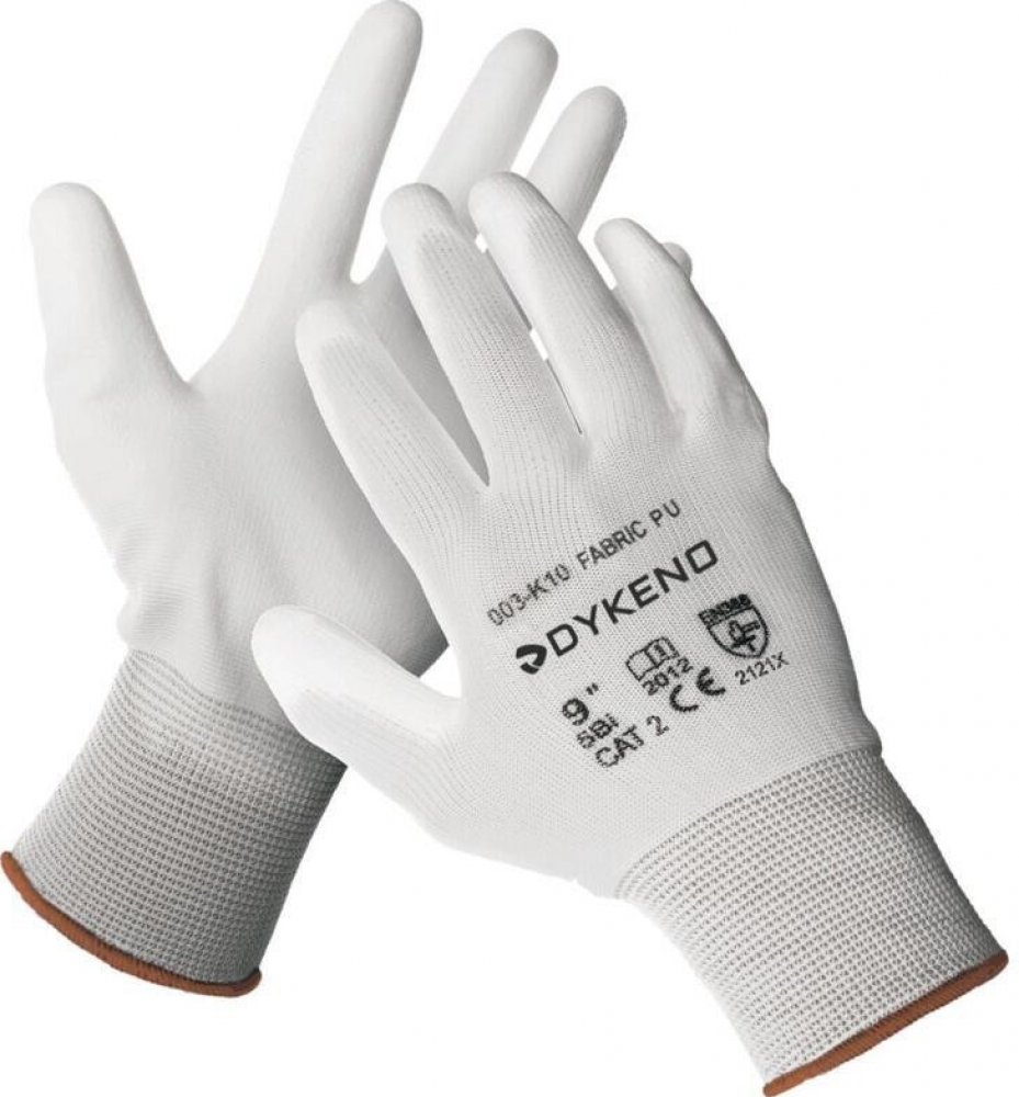Pletené bezešvé polyesterové, rukavice s tenkou vrstvou polyuretanu v dlani a na prstech a pružnou manžetou. Splňuje normy: EN 420, EN 388 proti mechanickým rizikům. Velikost: 5-11. Rukavice jsou baleny po 12 párech. Prodej pouze po celém balení (prodej pouze po 12 párech).