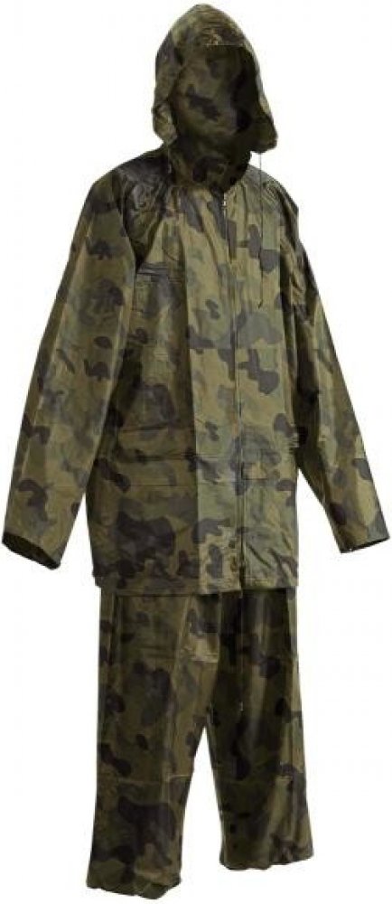 Dvoudílný voděodolný oblek s kapucí. 3 plášť s integrovanou kapucí v límci a kalhoty v pase do gumy. Dvě přední široké kapsy kryté légami proti průniku vody, spodní část rukávů lze regulovat drukem, ventilace na zádech a v podpaží, transportní obal.