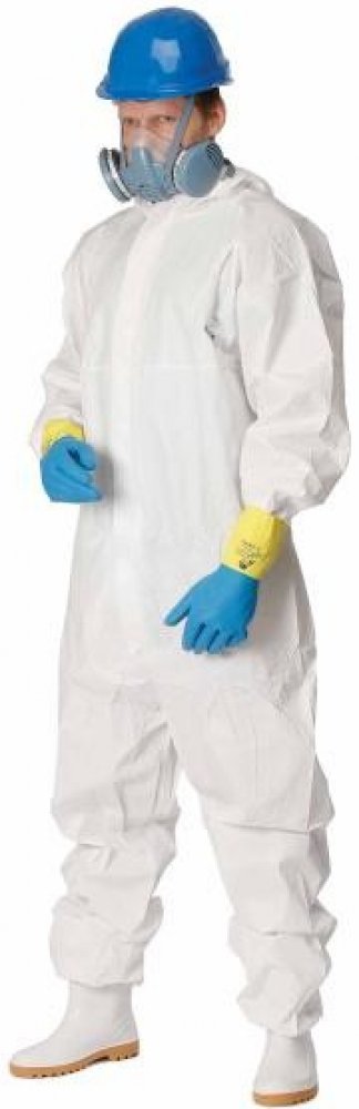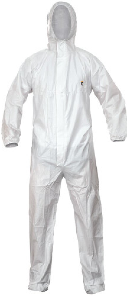 ochranná antistatická jednorázová kombinéza s kapucí, mikroporézní paropropustnou vrstvou; zip krytý klopou a gumičkou stahovatelnými rukávy a nohavicemi; chrání proti nebezpečným mirkoorganizmům; v ochraně proti postřiku kapalnými chemikáliemi patří do kategorie CE III; v ochraně proti průniku pevných částic a ochraně proti aerosolům typu 5B; v ochraně proti postřiku kapalnými chemikáliemi typu 6...