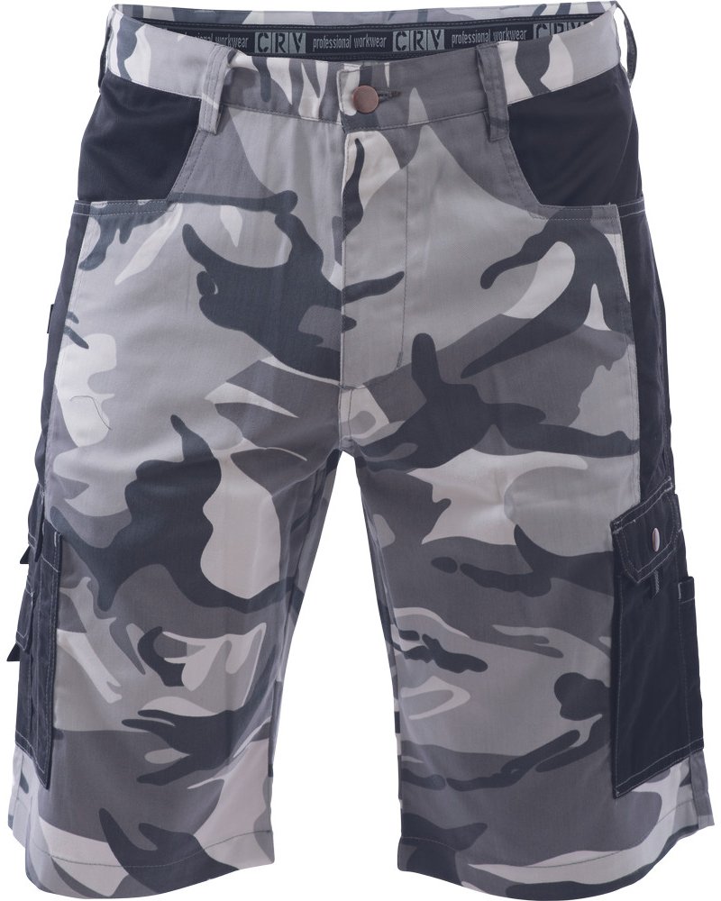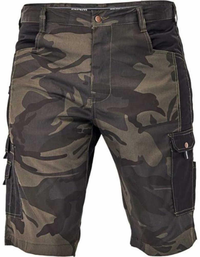 Pánské šortky z lehkého twillu v modních maskáčových barevných kombinacích; 6 funkčních kapes.