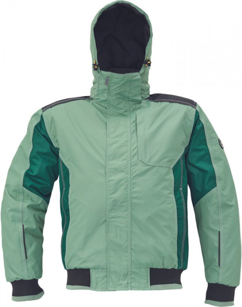 Pánská zimní pilotka s odepínací kapucí. 1 náprsní kapsa, 2 boční kapsy, 2 vnitřní kapsy. Zapínání na zip kryté légou. Elastické žebrované náplety na rukávech a spodním dílu. Reflexní prvky v barevném odstínu. Možnost strojního vyšívání.