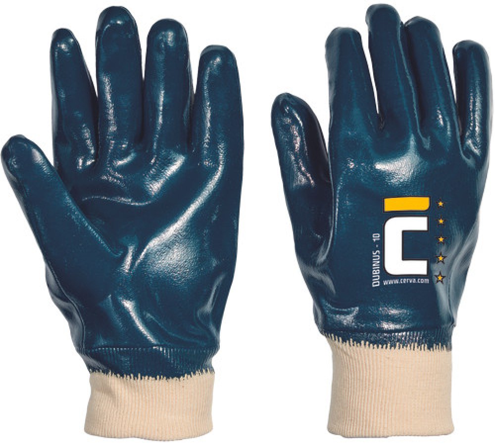 Rukavice šité z bavlněného úpletu, máčené v silnější vrstvě nitrilu (protismykový úchop) a elastická pletená manžeta zabraňující průniku nečistot. Jsou určené pro prácí s abrazivními materiály v silně zaolejovaném prostředí.