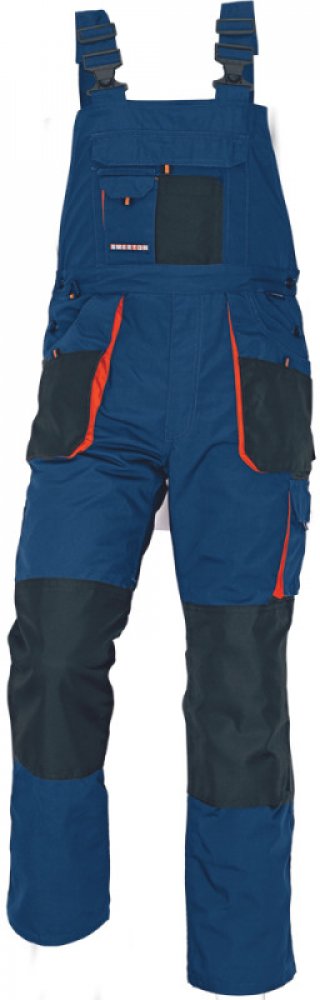 • pánské pracovní kalhoty s laclem, vysoká odolnost • multifunkční kapsy • Oxford 600D zesílení kolenních kapes pro vkládání ochranných nákoleníků