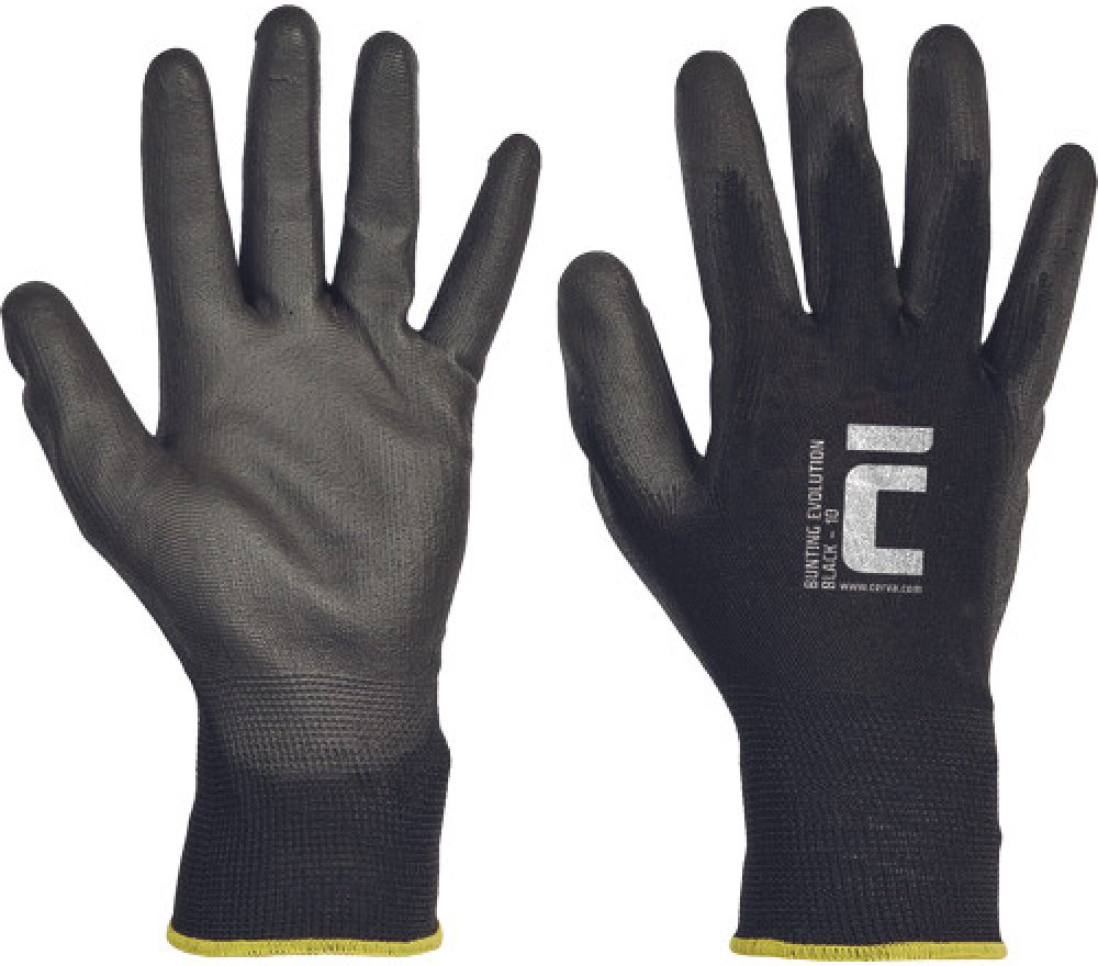 • pletené bezešvé polyesterové rukavice • s tenkou vrstvou polyuretanu v dlani a na prstech • pružná manžeta