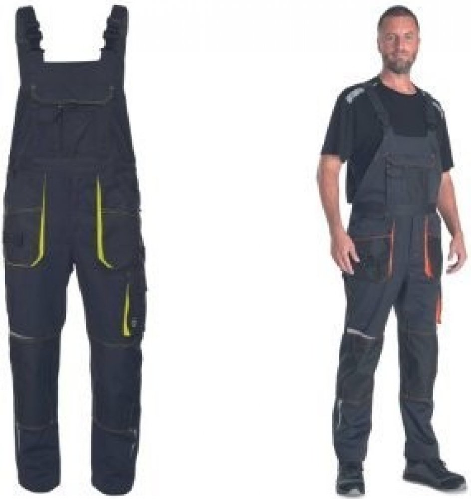 • pánské pracovní vysoce odolné strečové kalhoty s laclem • elastický pas • multifunkční kapsy • 1 velká náprsní kapsa • Oxford 600D zesílení kolenních kapes pro vložení chráničů kolen • tištěné reflexní seg...
