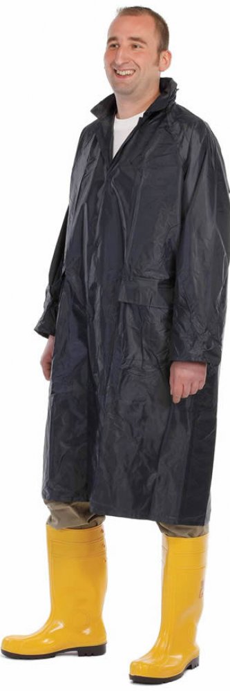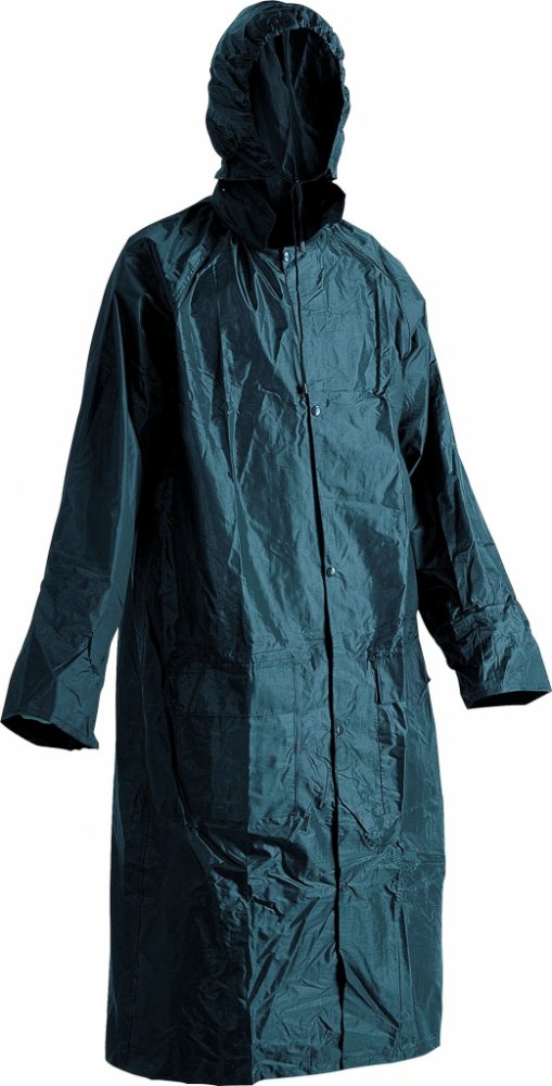 Voděodolný ¾ plášť s integrovanou kapucí. prodloužená délka, plášť má přelepené švy, dvě přední kapsy kryté légami proti průniku vody, vnitřní manžeta do gumy, ventilace na zádech a v podpaží, praktické, dobře skladovatelné balení. Materiál: 100 % PVC. Barevné provedení: modrá, žlutá, zelená. Vel. M-3XL