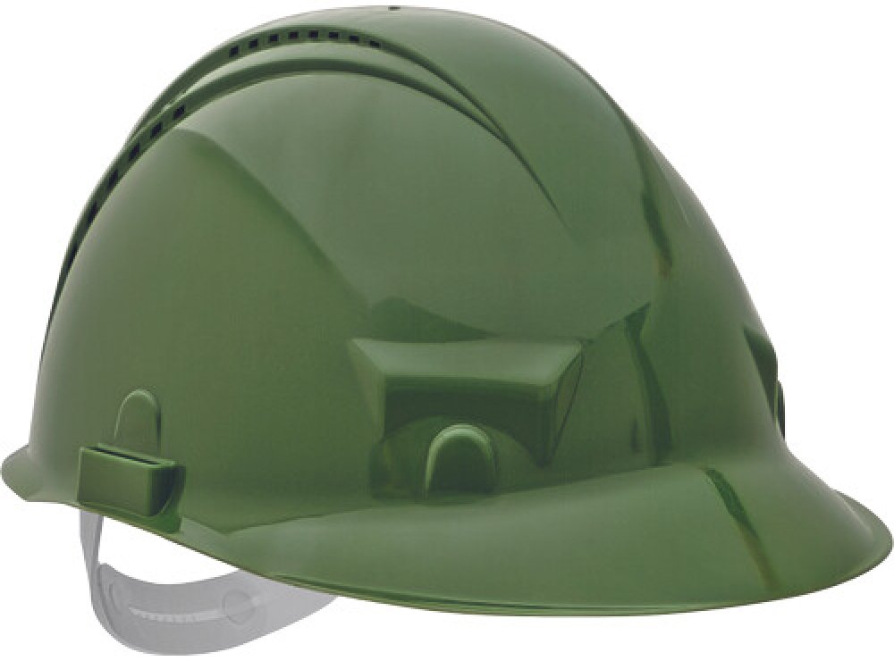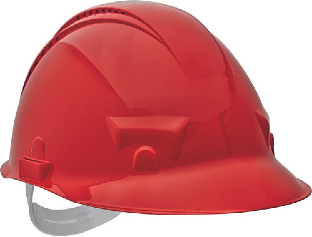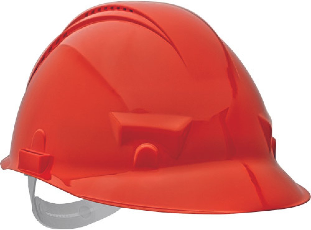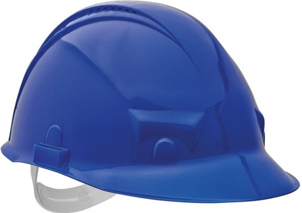 průmyslová ventilovaná přilba; 6-ti bodovým náhlavním kříž; nastavení velikosti (55-62 cm) pomocí posuvného pásku