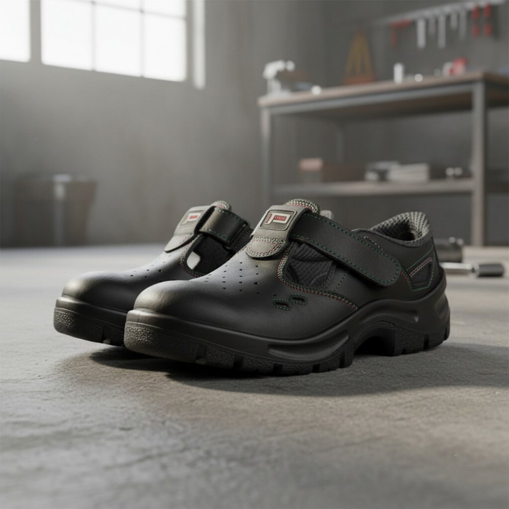 Lehké a prodyšné pracovní sandály s protiskluzovou a antistatickou podrážkou z polyuretanu nabízejí maximální pohodlí i bezpečnost při práci. Splňují normu EN ISO 20347 (O1 SRC) a jsou vhodné pro dlouhodobé nošení. Odolný svršek z kůže a lehká konstrukce (500g) snižují únavu nohou. Výhody a přednosti Tyto pracovní sandály kombinují pohodlí s bezpečností. Vyznačují se protiskluzovou a antistatickou podrážkou z dvojdílného polyuretanu, která je odolná vůči pohonným hmotám a zároveň absorbuje energii v patě pro snížení nárazů. Svršek z prodyšné kůže zaručuje optimální klima pro vaše chodidla po celý pracovní den. Lehká konstrukce (pouhých 500 g) snižuje únavu nohou. Sandály jsou vyrobeny v EU a splňují normu EN ISO 20347 (O1 SRC), což zaručuje vysokou kvalitu a spolehlivost. Použití a určení Sandály jsou ideální pro profesionální využití v různých odvětvích, kde je vyžadována ochrana nohou a zároveň je potřeba pohodlí a prodyšnosti. Jsou vhodné pro pracovní prostředí, kde hrozí kontakt s oleji a jinými chemikáliemi. Vhodný výběr pro dlouhodobé nošení, eliminující únavu a nepohodlí. Materiálové složení Svršek je vyroben z kvalitní lícové kůže, která je odolná a zároveň prodyšná. Podešev je z vysoce odolného dvouhustotního polyuretanu, který zajišťuje skvělou přilnavost a odolnost proti mechanickému poškození. Podšívka je z prodyšné polyesterové síťoviny, která odvádí pot a udržuje nohy v suchu. Sandály neobsahují ocelovou tužinku.