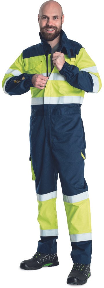 • pánská HI-VIS multinormní kombinéza s elastickým pasem • zapínání na zip kryté légou na suchý zip • 2 boční kapsy • 2 stehenní kapsy s klopou na suchý zip • 2 náprsní kapsy na suchý zip • 2 zadní kapsy na suchý zip • dvojice 5 cm šitých reflexních pruhů okolo rukávů, boků a lýtek • elastické manžety rukávů se suchým zipem • nastavitelná délka nohavicPohlavípánskéDodavatelCERVANormyEN ISO 13688:2013Počet pracích cyklů50PrůmyslEnergie a telekomunikaceSvrchní materiál99% nehořlavá bavlna, 1% antistatické vlákno, 260 g/m², tkaný keprÚdržbaPerte na 60 °C, běžný prací cyklus