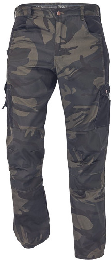Pánské kalhoty z lehkého twillu v modních maskáčových barevných kombinacích, 6 funkčních kapes, zesílená část kolen