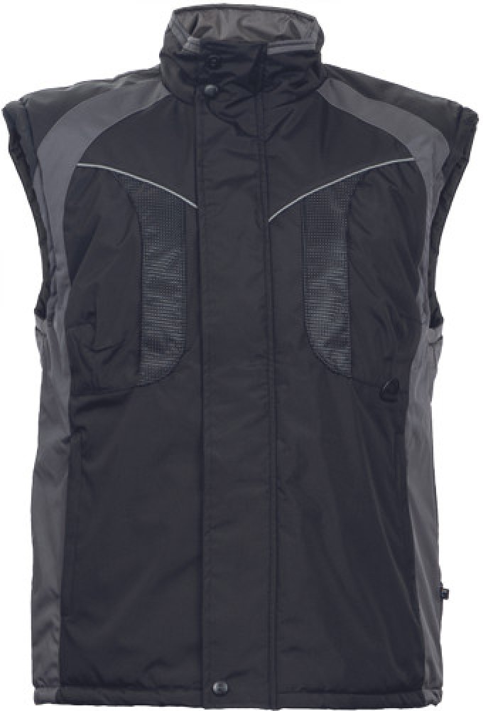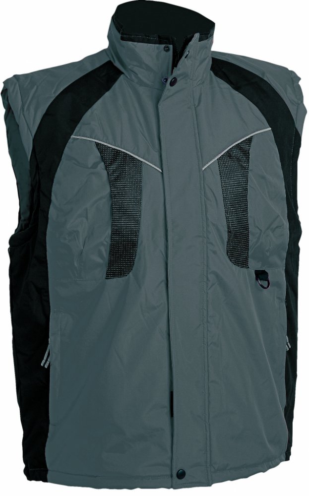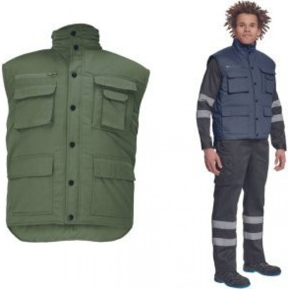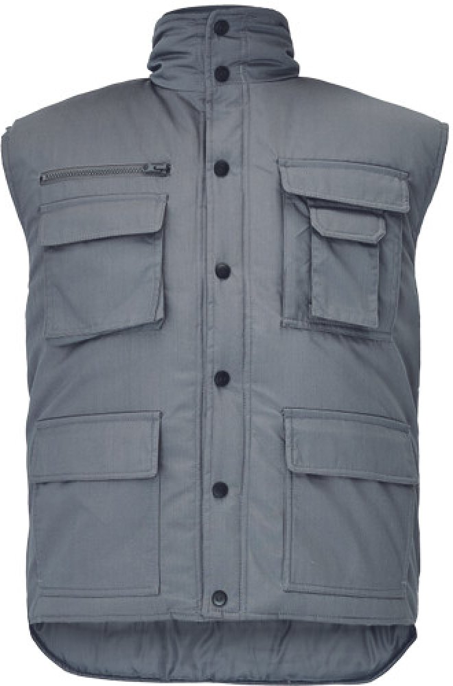 Zateplená nepromokavá pánská zimní vesta se stojáčkem; mechanicky odolná úprava RipStop; zapínání na zip kryté légou; spodní lem ke stažení na šňůrku; 2 postranní kapsy, 2 náprsní kapsy; reflexní doplňky. Svrchní materiál: 100 % polyester, 230 g/m², Povrstvení: PVC. Barva: šedá, zelená, červená, mod ...