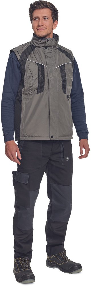 Cerva vesty zimní šedé polyesterové univerzální pánské standardní délka s knoflíky 3–4 kapsy 230 g/m² do exteriéru