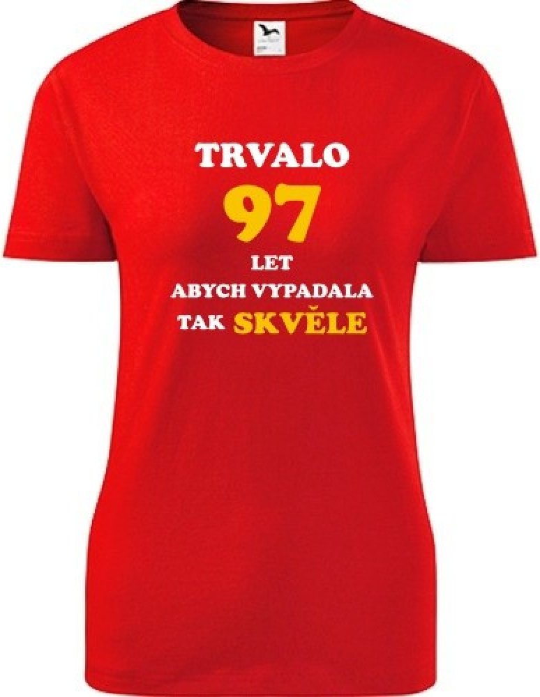 Červené dámské tričko trvalo 97 let. nabízené velikosti jsou S,M,L,XL,XXL. Výběr z 12ti barev. Tričko patří do kategorií Dárek pro ženu k 97, Dárek pro babičku, . Technologie potisku: Tisk na tričko je realizován pomocí termolisu a potisk je velice trvanlivý.